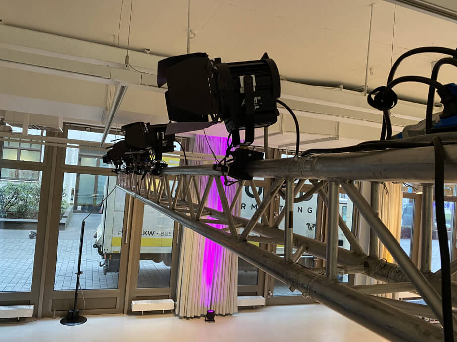Reibungsloser Betrieb durch abgestimmte Systeme und Support direkt vor Ort. Du betreibst eine Location, willst vermieten und nicht ständig improvisieren. Eine verlässliche technische Basis ist das entscheidende Argument für deine Kunden. Wenn Licht, Ton und Video bereits sinnvoll integriert sind, wird die Planung für alle Seiten einfacher und entspannter. Du schaffst einen Standard, der deine Location aufwertet und Abläufe beschleunigt. Weniger Verschleiß durch ständigen Auf- und Abbau, dafür schnelle Bereitschaft. Ob als Festinstallation oder flexible Dauerlösung: Technik ist dann gut, wenn sie einfach da ist und funktioniert. Das macht deine Räume zu einem Ort, an dem man gerne arbeitet – und den man gerne bucht.